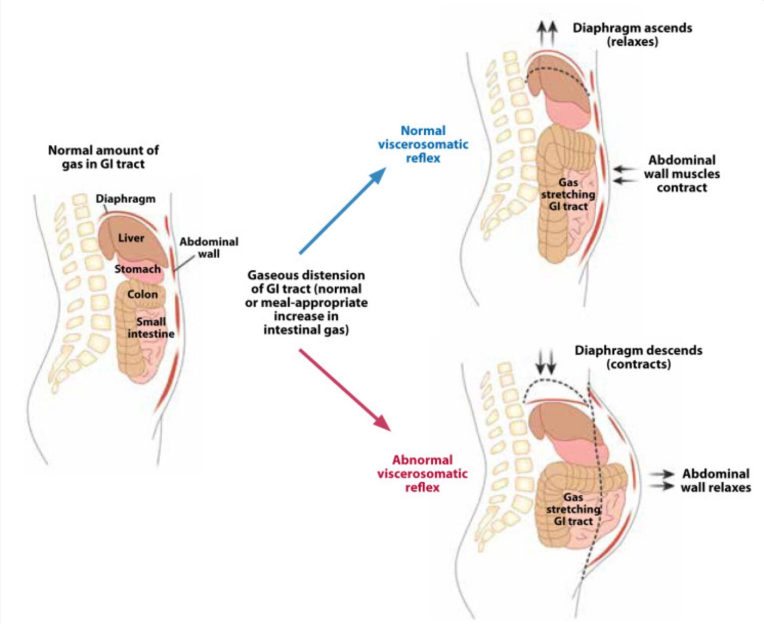 The abdominal pressure is from muscle mis-activation, not from “trapped wind.”